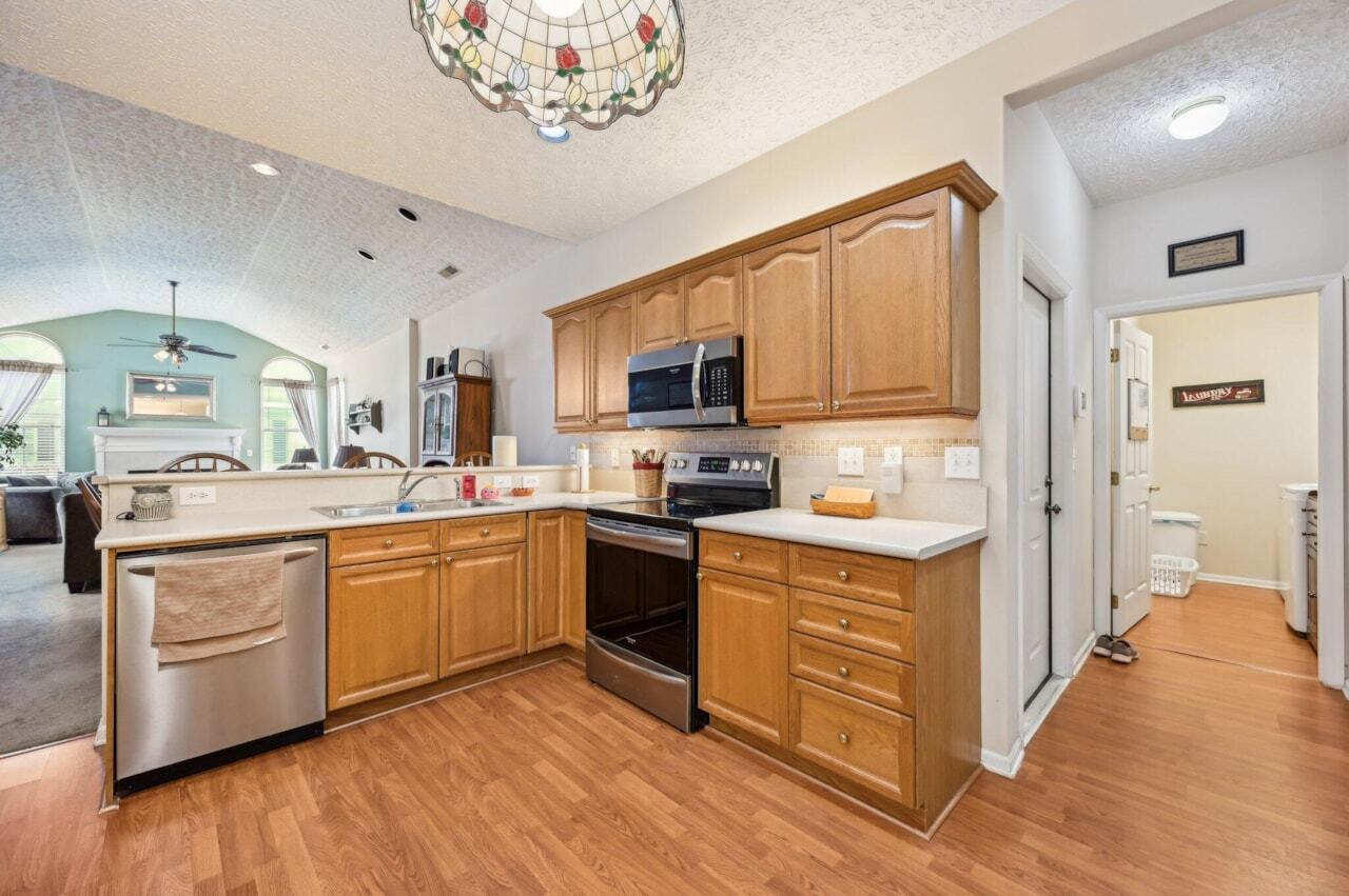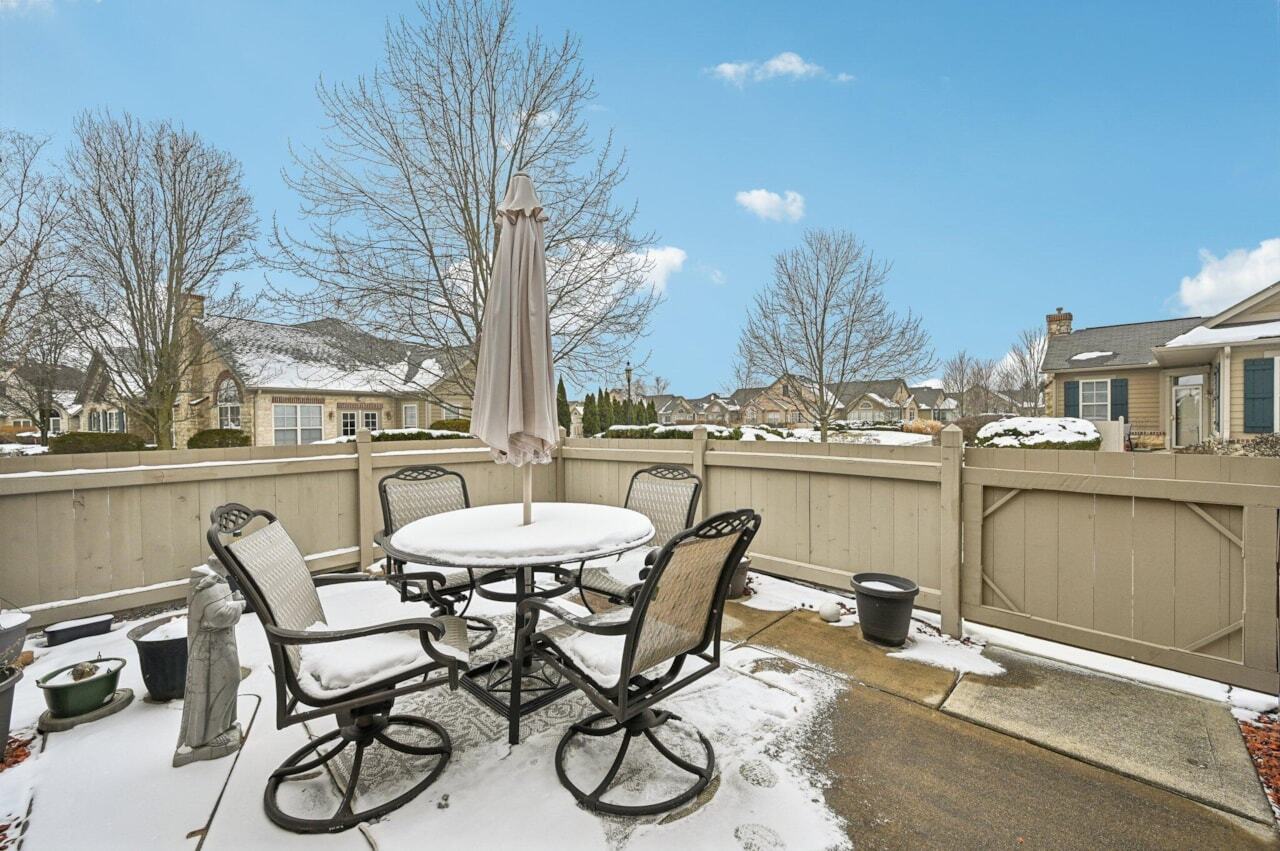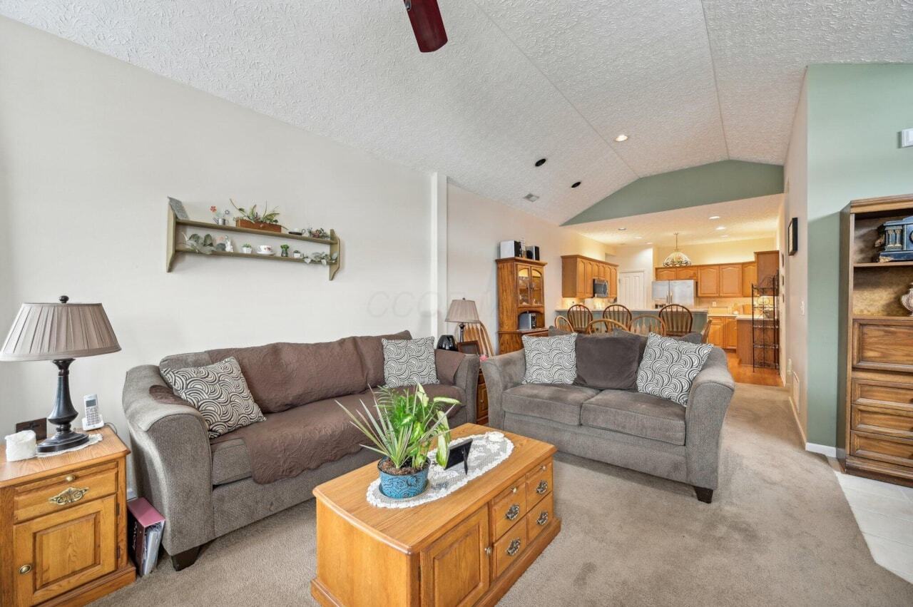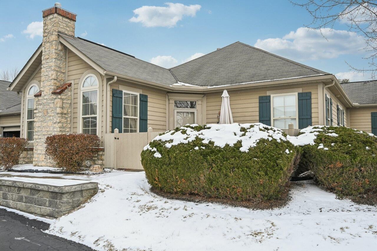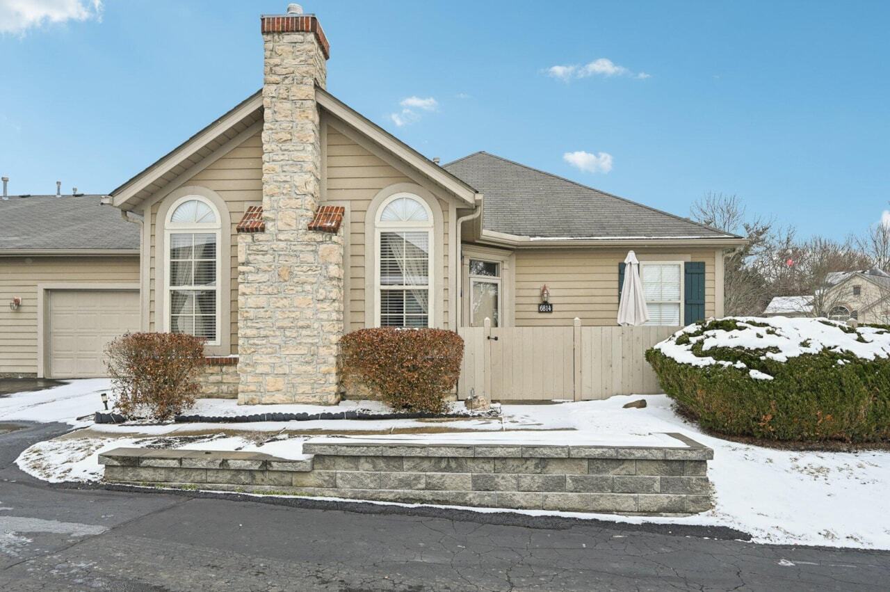 Here is your chance to buy a beautifully cared for, over 1200 sq ft, 2 BR, 2 BA ranch condo with a 2 car attached garage. Carefree Living! Open contemporary floor plan. Large great room with soaring cathedral ceilings, gas log fireplace, formal dining area & a well-appointed kitchen loaded with oak cabinets, all stainless appliances, eating bar & pantry. A nice sized primary suite with full bath & walk-in closet. Upgrades & extras include 1st floor laundry, raised panel white doors, plenty of storage, a fenced concrete patio & much more. Awesome quiet location: across the street from the clubhouse & pool, with great access to RT-33. The condo fee covers water/sewer, trash, snow removal, lawn care & exterior maintenance. Attention Agents: See ATA remarks & offer instructions doc.